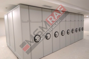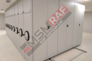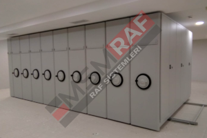 Alan tasarrufu sağlayan, yoğun depolama ihtiyaçları için ideal hareketli raf sistemleri.